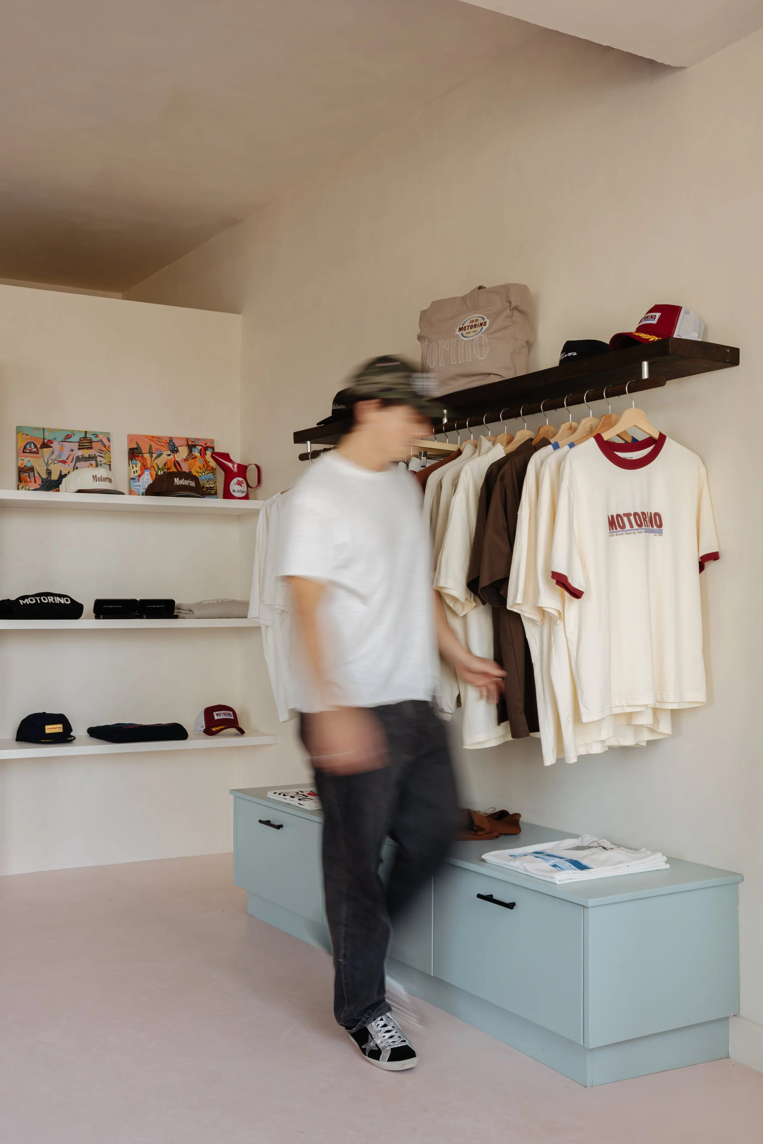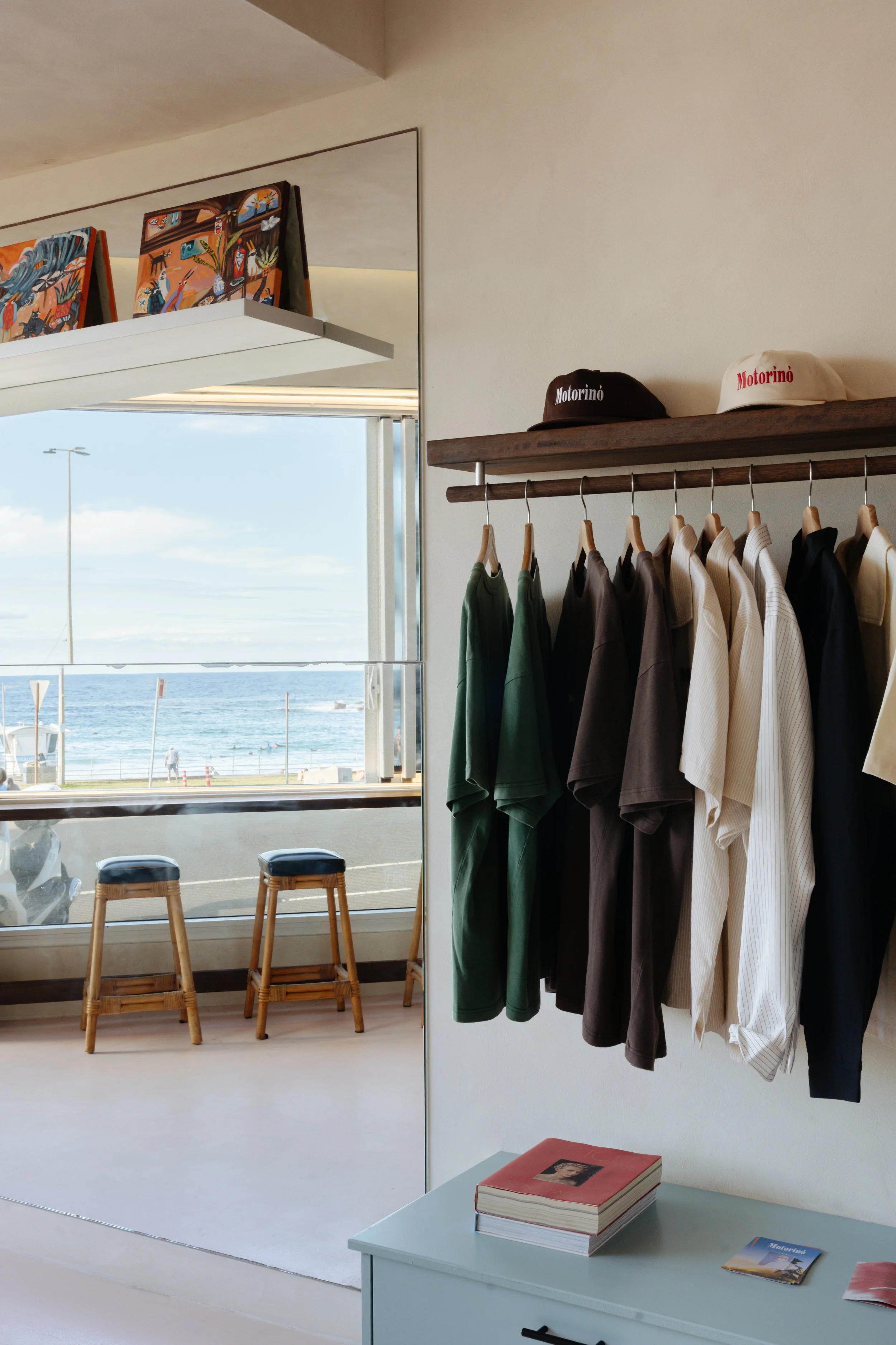 An ode to the iconic Bondi beach, on the doorstep of Motorino North Bondi. Sandy textured paint brings the sand from the beach into the store for a lived in costal feel.