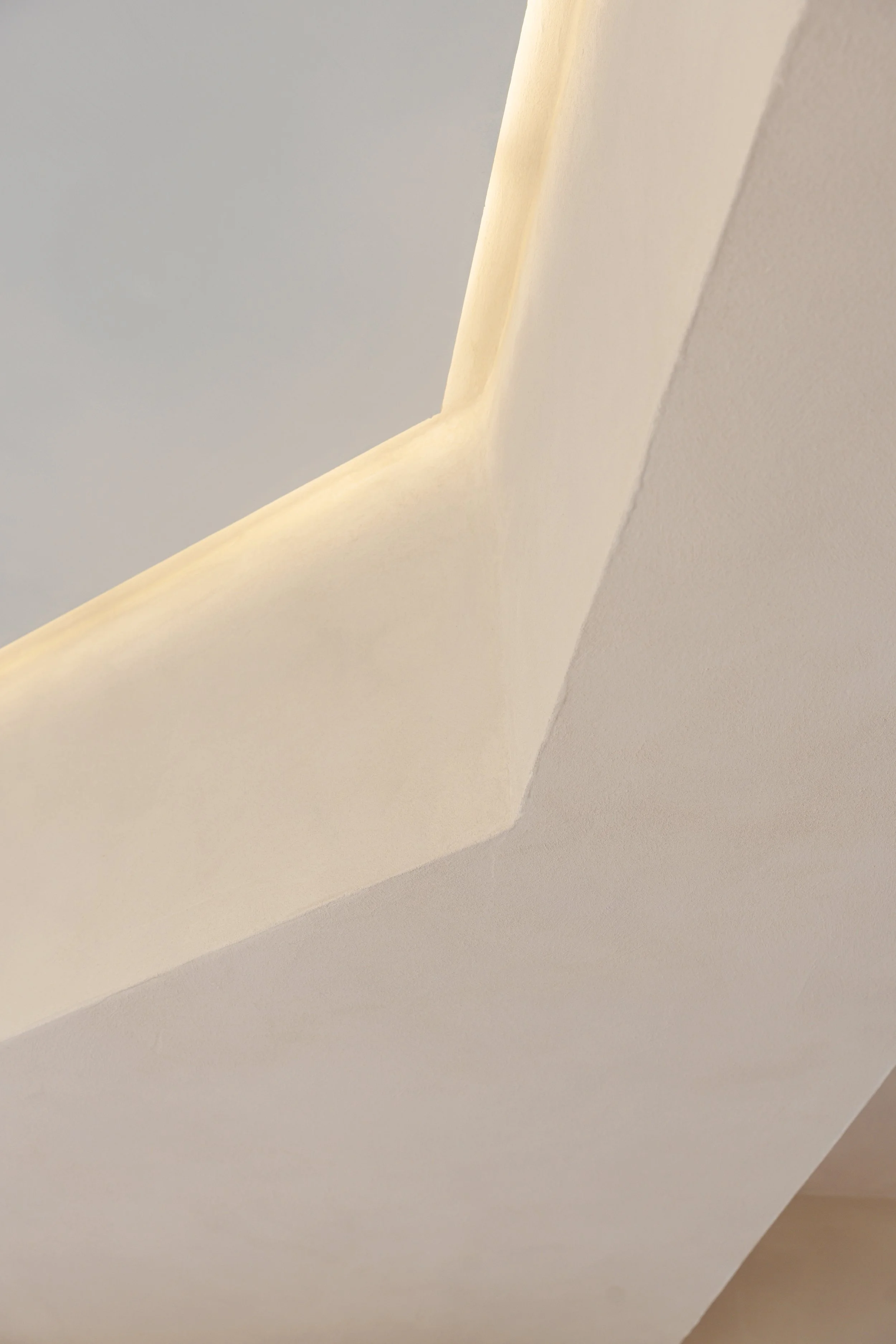 A cloudy lime wash mural contained to the feature ceiling, mirrors the blue skies outside, creating a unique ‘skylight’ feature.
